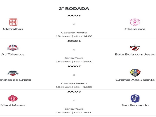 • Santa Paula (14h00): AJ Talentos x Bate Bola com Jesus
