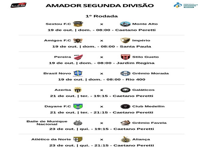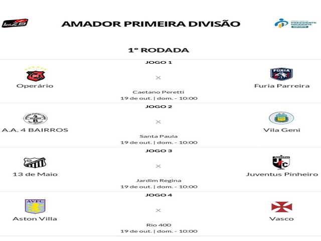 Amador – Primeira Divisão – 1ª Rodada – 19 de Outubro (Domingo – 10h00)