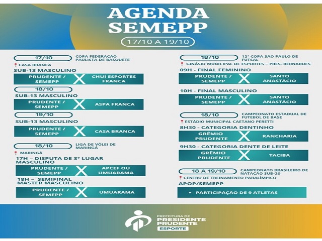 • Tarde: Sub-18 Masculino – Prudente/SEMEPP x Casa Branca