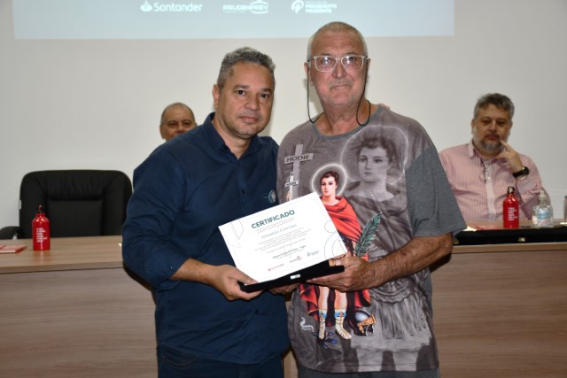 Com 41 anos de atuação, também foram homenageados Elisette Aparecida Rota Ghiroto Rodrigues (Seduc), Antônio Carlos Message (Assistência Social), José Luiz Amorim (Obras), Ênio Pereira Guido (Seduc) e João Donizete Veloso dos Santos (Prudenprev), que compôs a mesa de autoridades. “Fico muito feliz em participar dessa celebração tão significativa para todos nós servidores e para a história do serviço público prudentino”, destacou Veloso.