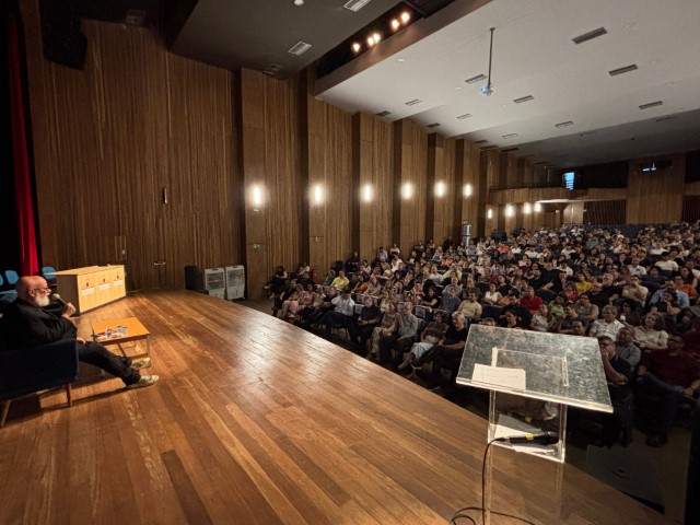 Para marcar o encerramento da primeira fase do Programa Desenvolve Prudente e celebrar os resultados alcançados em 2025, uma parceria da Prefeitura de Presidente Prudente com o Sebrae-SP, foi realizada uma palestra com o filósofo e professor, Luiz Felipe Pondé, na noite desta quarta-feira (12/11), no Teatro Paulo Roberto Lisboa, no Centro Cultural Matarazzo, que tratou sobre ‘o impacto da inteligência artificial nas relações’.