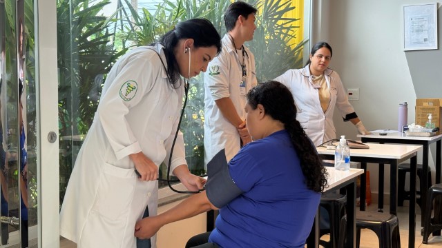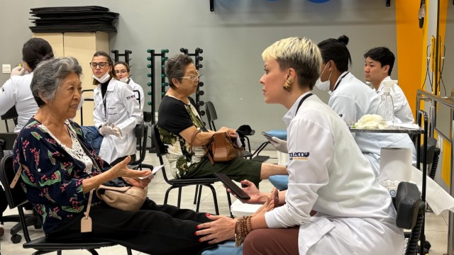 Foram oferecidos testes de glicemia, verificação de sinais vitais, bioimpedância e antropometria, teste de creatinina (coleta de sangue no local), exame de fundo de olho, avaliação dos pés e saúde bucal, orientações nutricionais e de atividade física. As equipes da Vigilância Epidemiológica e da Unidade de Vigilância de Zoonoses (UVZ) também compareceram ao evento levando orientações importantes sobre combate à leishmaniose visceral e à dengue.