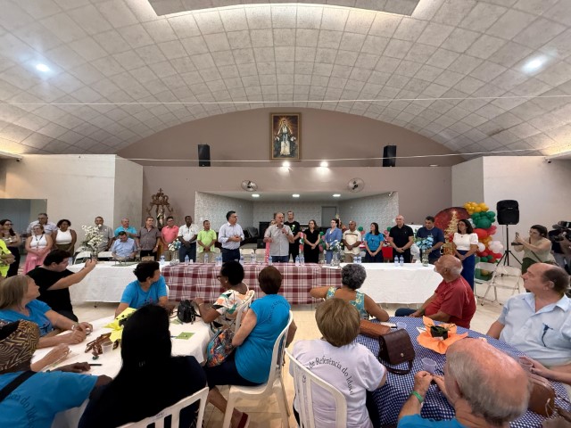 Alencar ainda visitou a confraternização da Coordenadoria Municipal do Idoso, que reuniu cerca de 400 idosos no salão paroquial da Igreja Maristela.