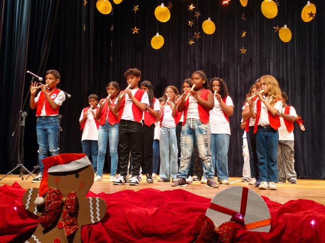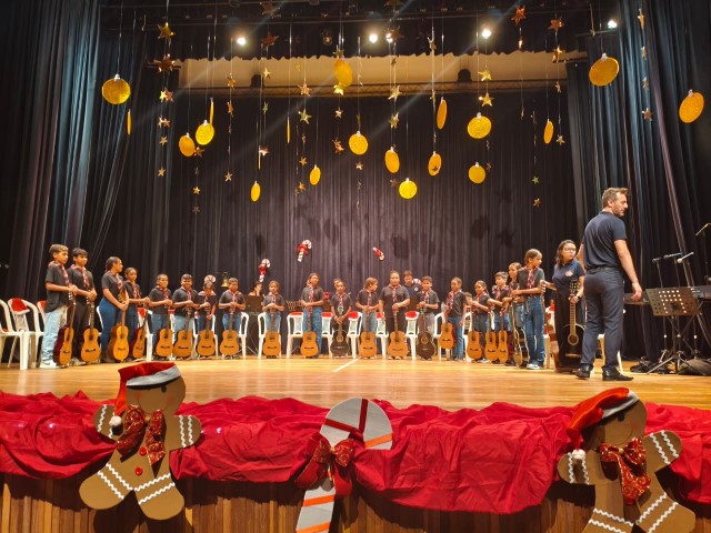 As performances incluíram dança, artes circenses, inglês, canto, flauta, escaleta, violão e outros instrumentos, evidenciando o trabalho diversificado desenvolvido nas oficinas do programa. Cada apresentação trouxe ao palco o aprendizado, o dinamismo e o encantamento, que marcam a proposta pedagógica do Cidadescola, reforçando seu compromisso com a formação integral das crianças.