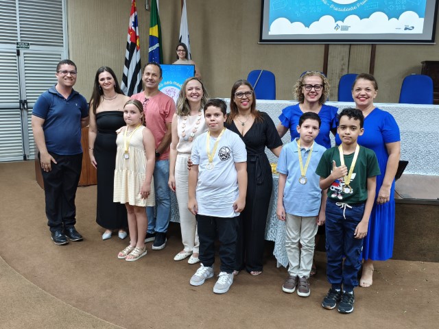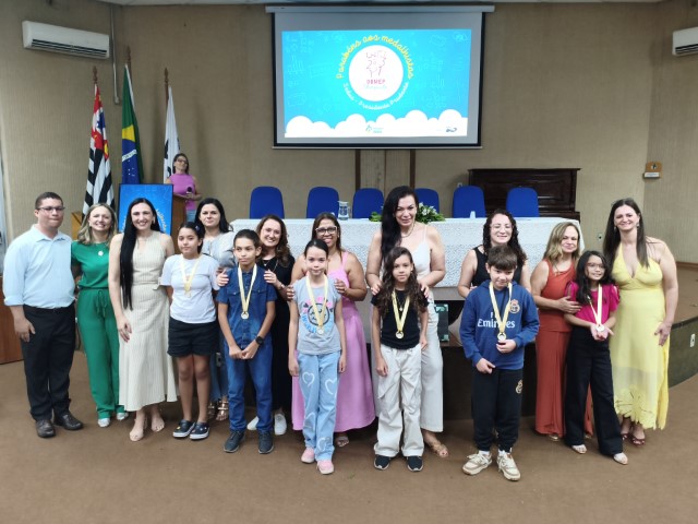 Na sexta-feira (12) foram entregues as medalhas de ouro para os alunos das escolas municipais: EM Antônio Moreira Lima, EM Antônio Zacharias, EM Rotariano, EM Carlos Castilho Cabral, EM Professor Ditão, EM Domingos Ferreira de Medeiros, EM Ettore Marangoni, EM Francisca de Almeida Góes Brandão, EMEIPP Gilza Maria Zauhy Garms, EM Gisele Dalefi, EM Ivo Garrido, EM José Carlos João, EM José Soares Marcondes, EM Ludovica Ligabo Rodrigues, EM Maria Isabel Barbosa Negrão, EM Pedro Furquim e EM Rosy Odetty Roriz Brandão.