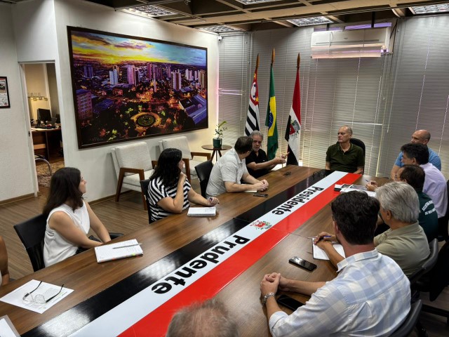 O prefeito de Presidente Prudente, Milton Carlos de Mello – Tupã, e o vice-prefeito, José Osanam, receberam no gabinete do Paço, na manhã desta quinta-feira (15/01), o atual vice-diretor da FCT/Unesp, professor doutor Ricardo Pires de Paula, além do diretor e da vice-diretora eleitos para o mandato de 2026 a 2030, professor doutor Antônio Cézar Leal e professora doutora Clarissa de Almeida Olivati, respectivamente, que tomarão posse em março.