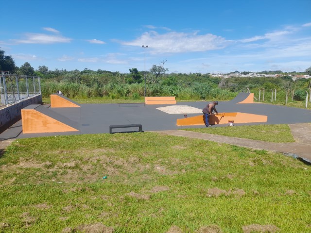 Os trabalhos foram iniciados na última semana pela área de lazer ‘Valmir Lúcio da Silva’, local que recebeu revitalização em diversos pontos, como pintura completa na pista de skate, pintura no calçamento, manutenção no alambrado, manutenção no corrimão e nos bancos.