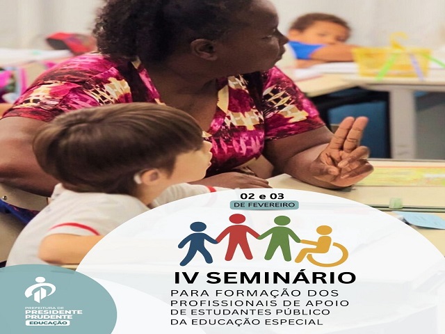 A Prefeitura de Presidente Prudente, por meio da Secretaria Municipal de Educação (Seduc), promove nesta segunda e terça-feira, dias 02 e 03 de fevereiro, o IV Seminário para Formação dos Profissionais de Apoio a Estudantes Públicos da Educação Especial, que reúne cerca de 400 participantes.