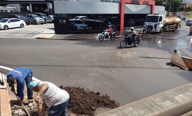 Nesta quinta, a limpeza foi executada nas bocas-de-lobo do Parque do Povo com a Avenida Brasil, no cruzamento com a Rua Arthur Villa Real, altura da Rua Francisco Ribeiro, nas proximidades da Rua Álvares Machado, esquina da Rua dos Pardais e esquina com a Rua João Gonçalves Foz.