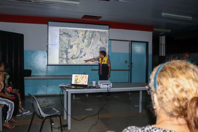 Vários itinerários foram simulados conforme os moradores iam solicitando. A comunidade fez alguns apontamentos, como o embarque de idosos e o itinerário dos estudantes, que foi esclarecido e anotado pela equipe da Semob para análise.
