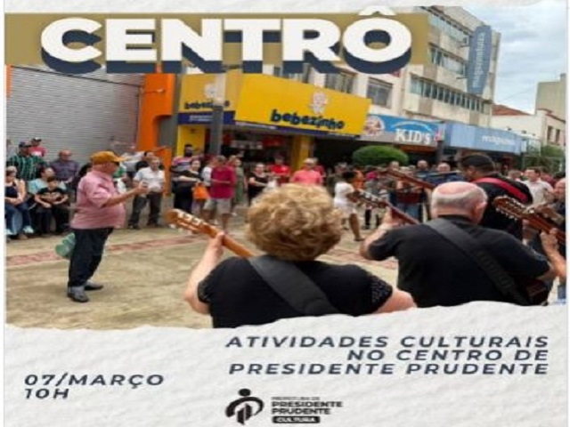 Neste sábado, 7 de março, a partir das 10h, a região central de Presidente Prudente recebe mais uma edição do Projeto Centrô, iniciativa da Secretaria Municipal de Cultura (Secult) que une valorização artística e fortalecimento do comércio local.