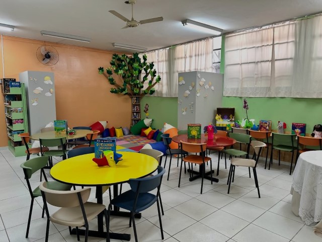 Idealizado por professores, equipe gestora e pedagógica, o ambiente foi totalmente revitalizado e recebeu novos itens, como mesas para leitura, que vai atender desde a Educação Infantil até o 5º ano.