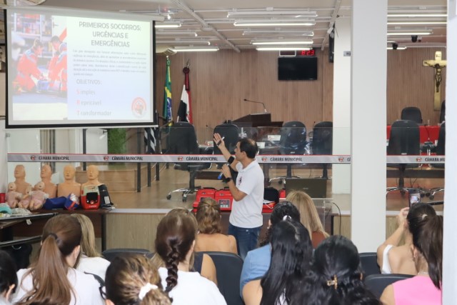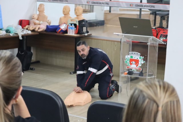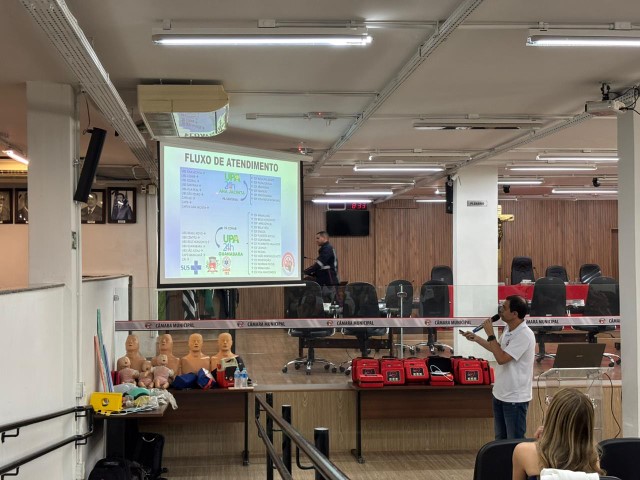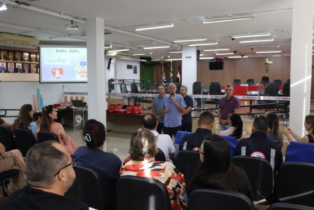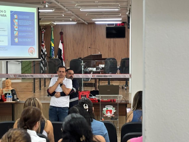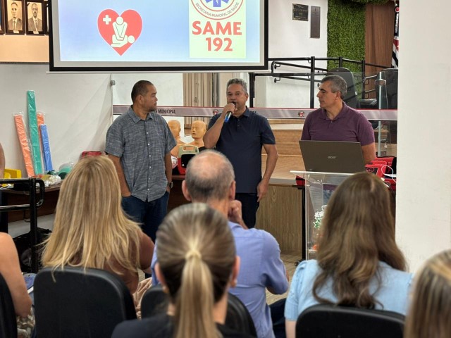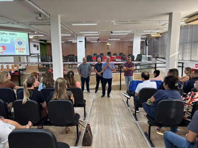 Os profissionais da Sesau, médicos e dentistas, receberam um treinamento sobre o manuseio do DEA e orientações sobre primeiros socorros, que foi ministrado pelo enfermeiro do Same 192, Marco Aurélio Lúcio, e pelo socorrista do Same, Laércio Bianchi.