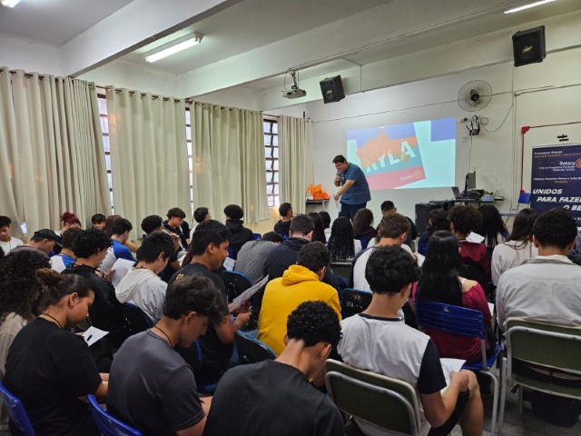 Mais de 100 estudantes do terceiro ano da Escola Estadual Hugo Miele participaram, nesta quinta-feira (23/04), da primeira edição de uma ação promovida pela Coordenadoria Municipal da Juventude de Presidente Prudente, em parceria com o Rotary, por meio do Programa RYLA.